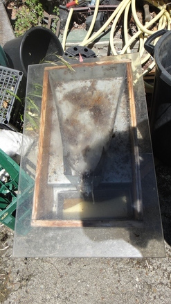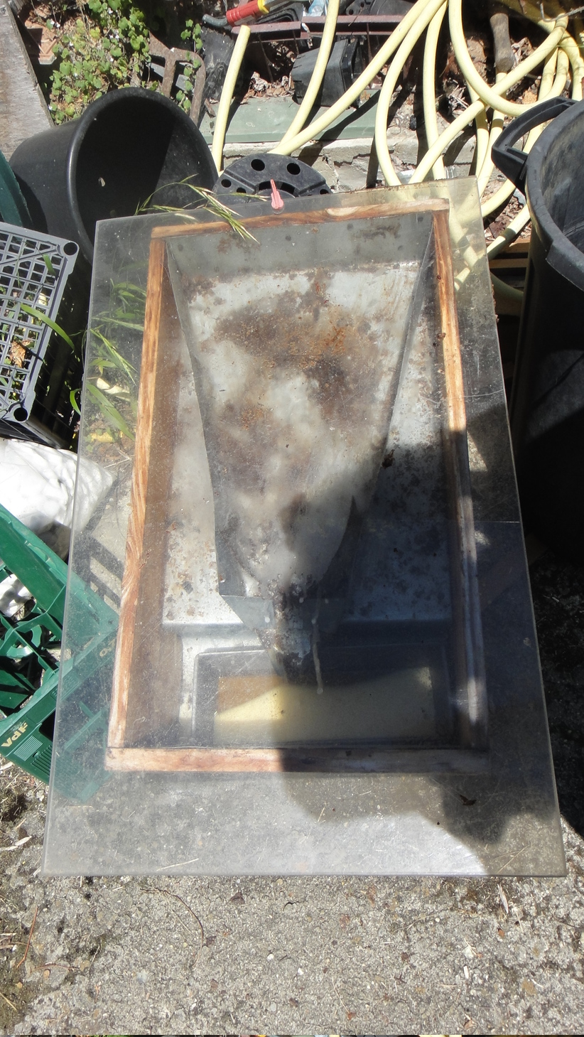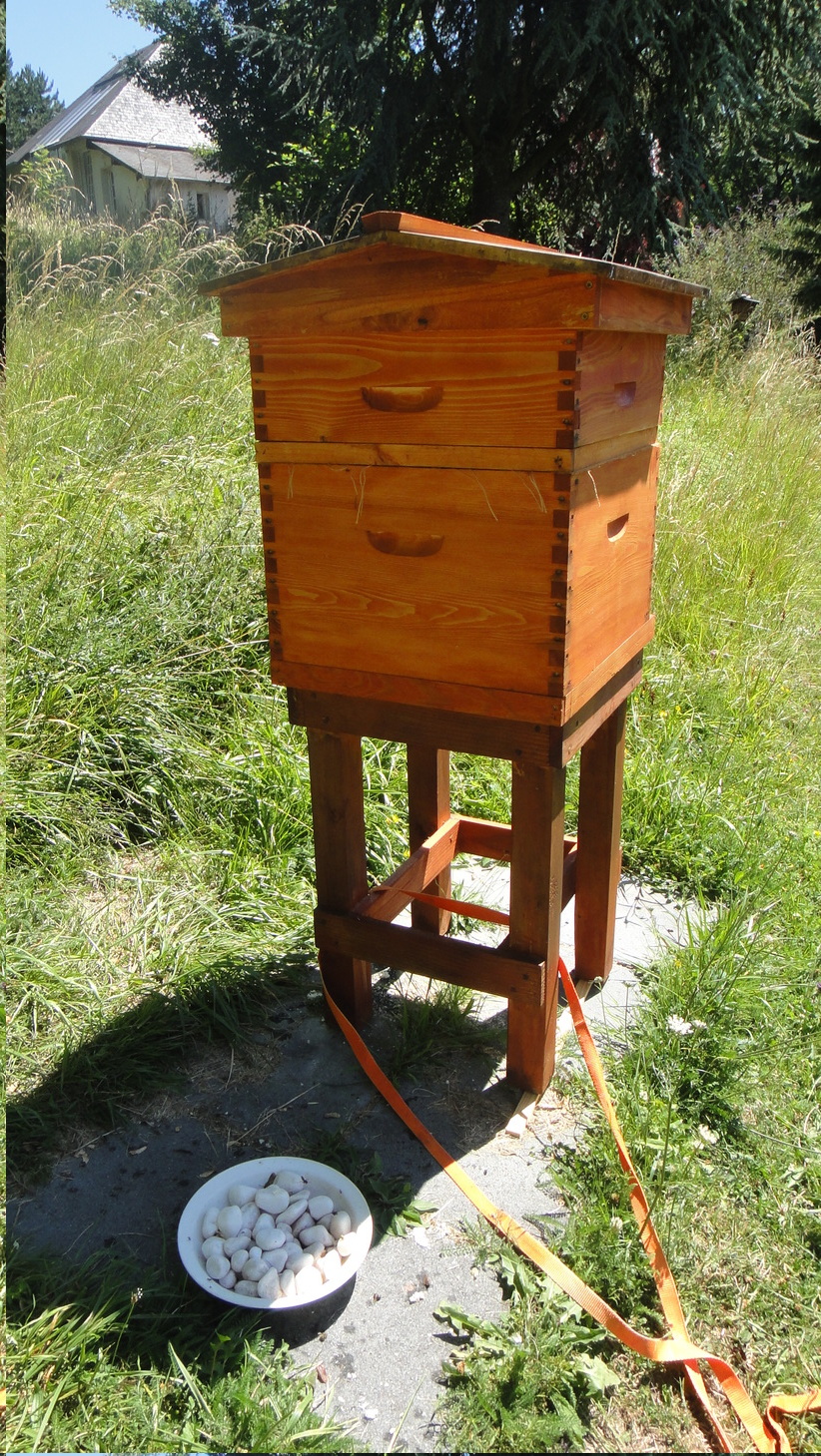 Le chasse-abeilles est posé sur le plus haut élément resté en place.