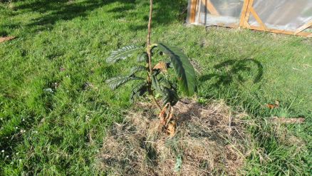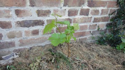 Un pied de vigne Centennial Seedless de 5 mois contre le mur de la maison exposé sud-ouest (la plus chaude exposition ici) et avec un débord de la toiture: