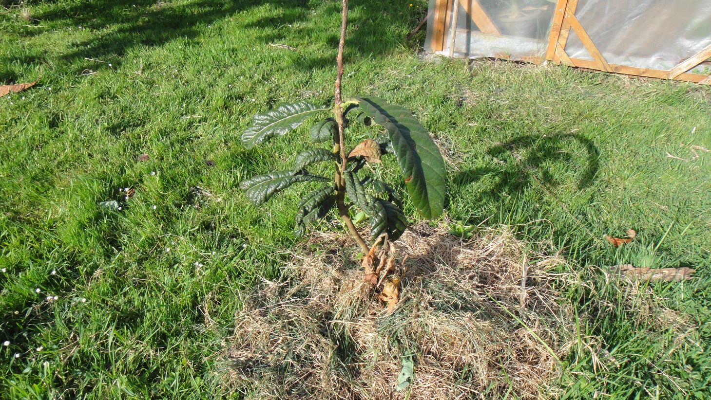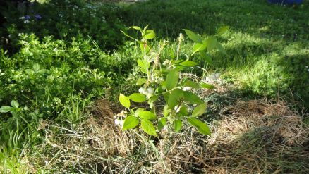 Un pied de myrtiller Ivanhoé de 6 mois planté à l'ombre sous le noisetier là où de la mousse était présente: