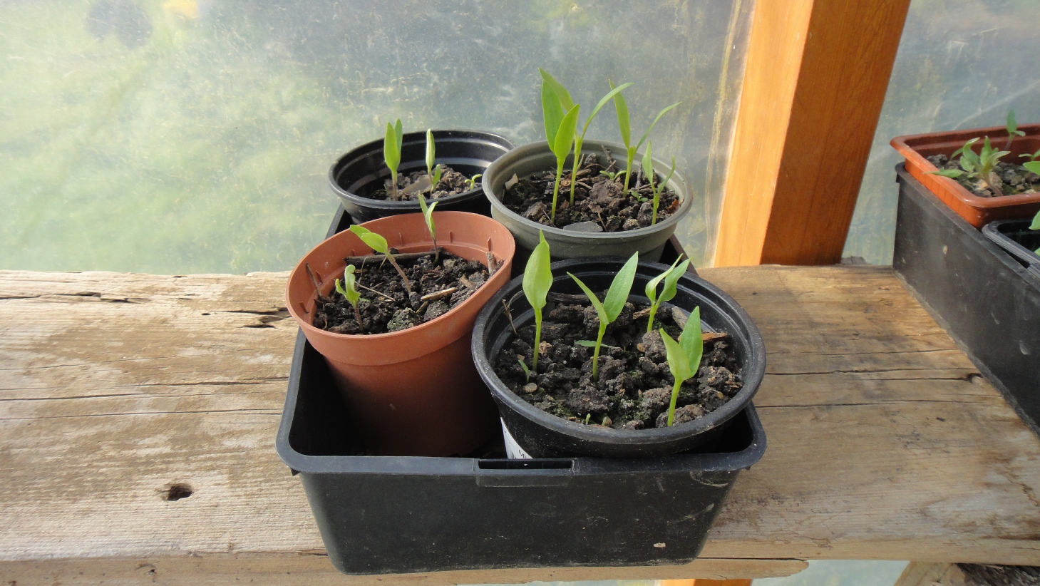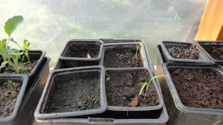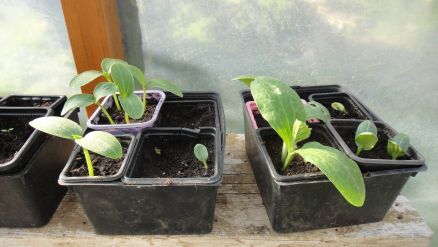 Semis de courgettes, potimarrons Red Kuri et Hokkaïdo vert: