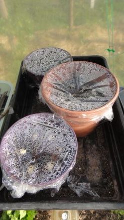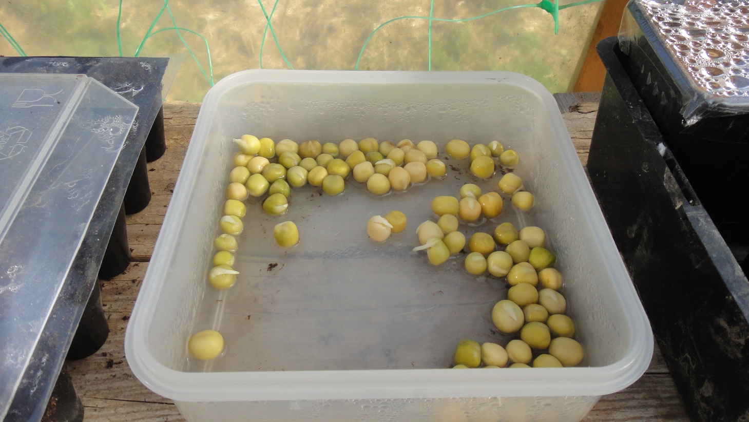 Pois nains Merveille de Kelvédon semés en pot mi-février et en pleine terre en mars:
