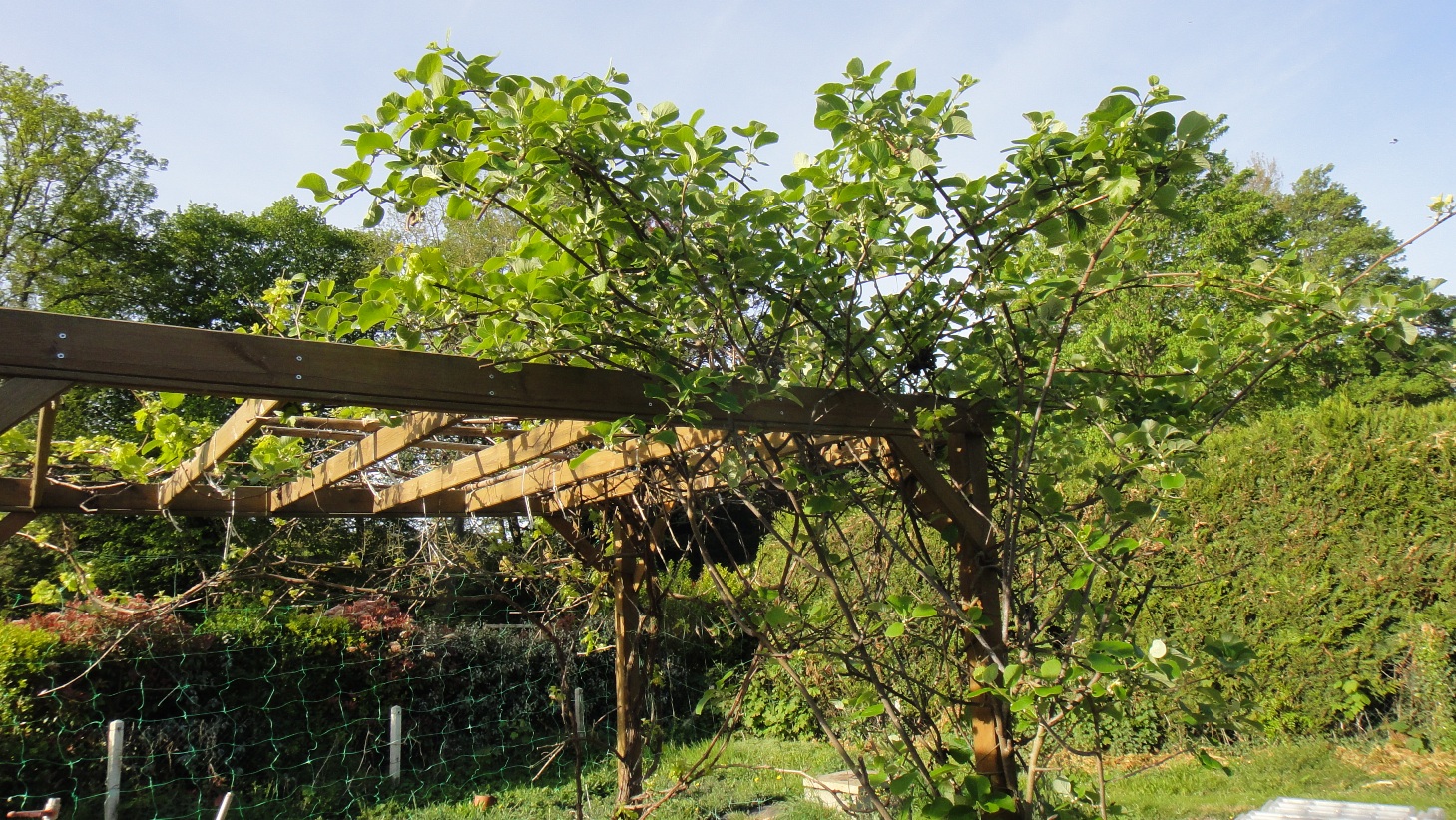 Un pied de kiwi mâle de 3 ans et demi sur la pergola: