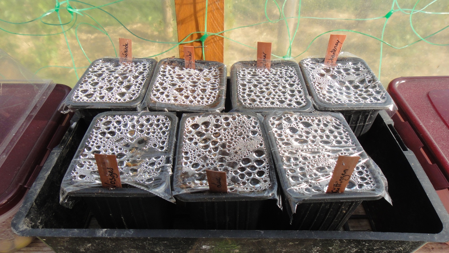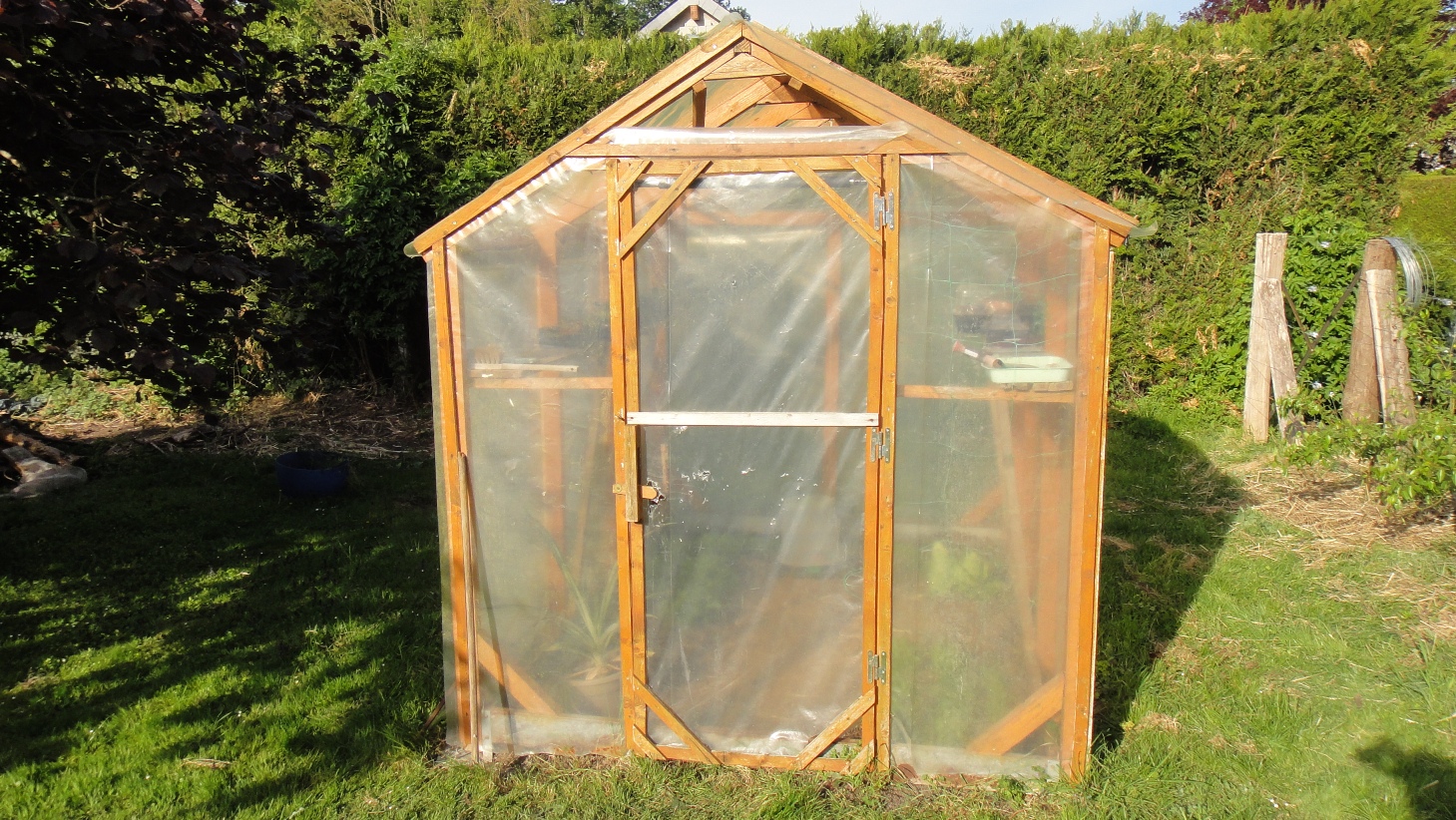 La serre, bien utile pour les semis en plaques à alvéoles et godets en mars et avril, ainsi que pour les plantes qui le demandent (poivron, grosses tomates, pastèque, gombo):