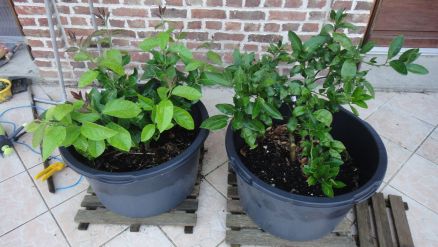 Citronnier à gauche et mandarinier Satsuma Owari à droite: