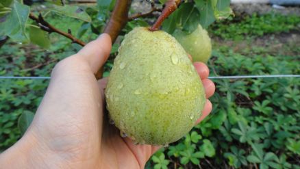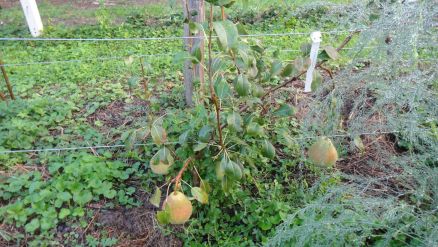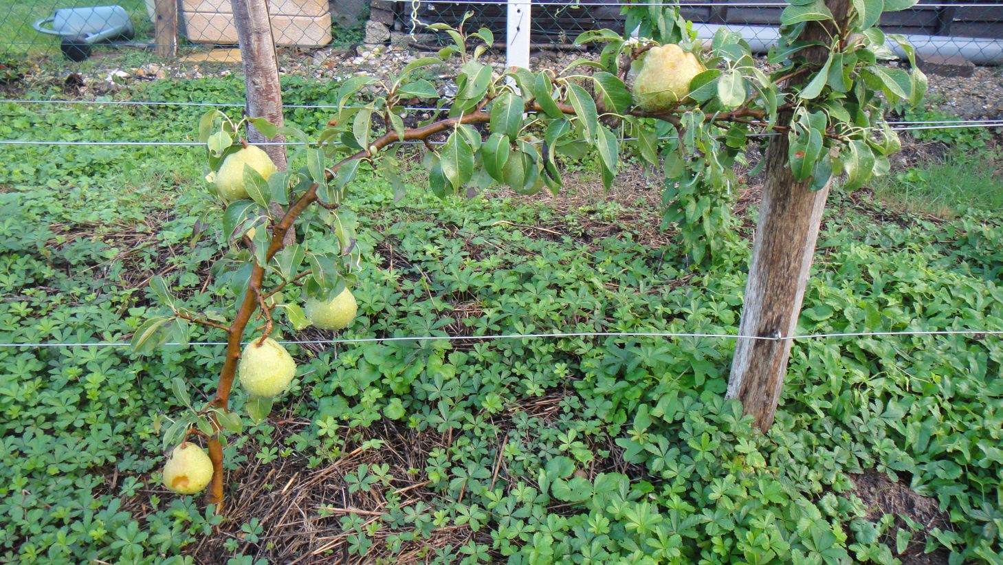 Poires Bergamotte Espéren et Souvenir de Jules Guindon (scions plantés il y a 33 mois et 21 mois):