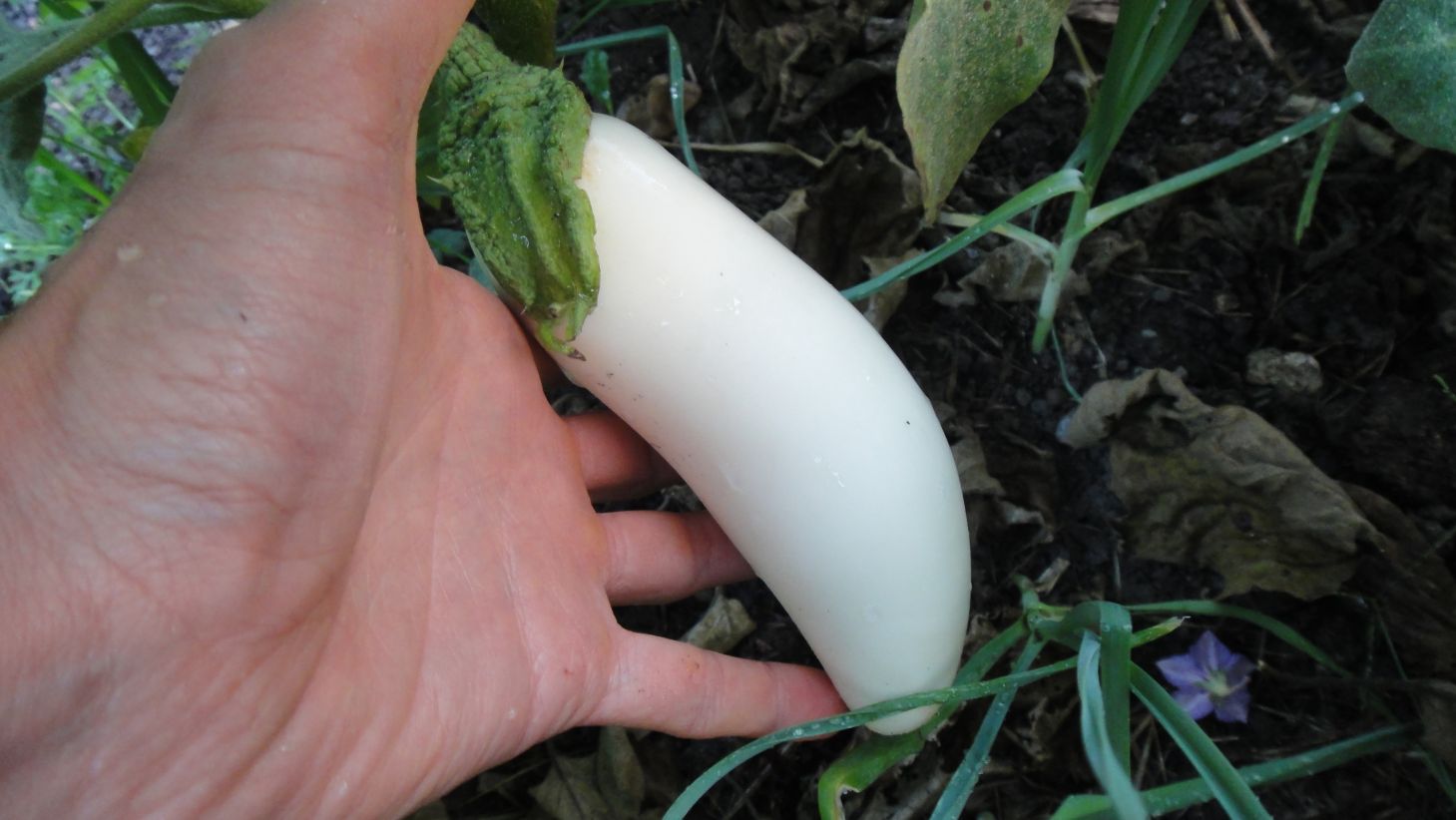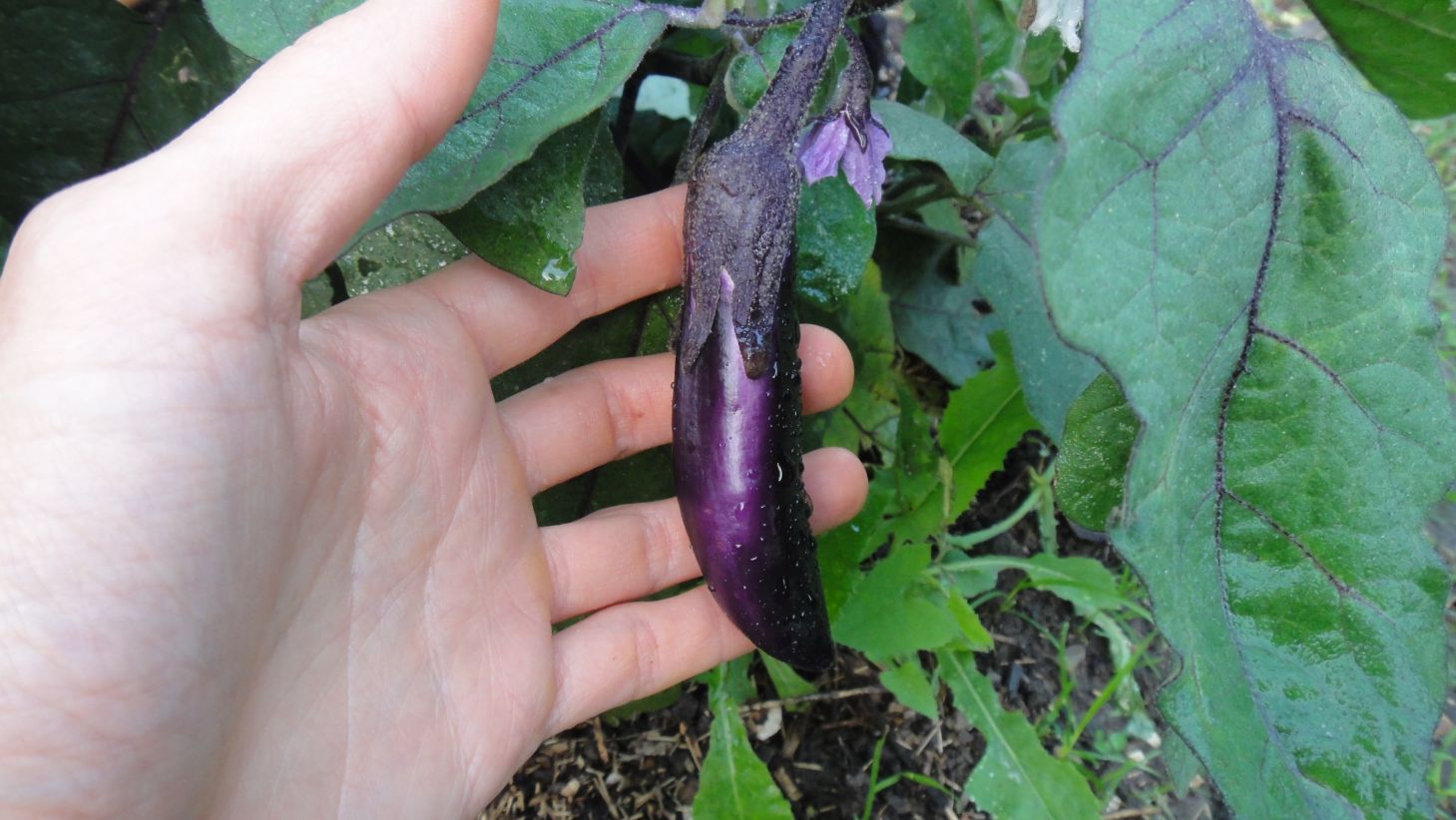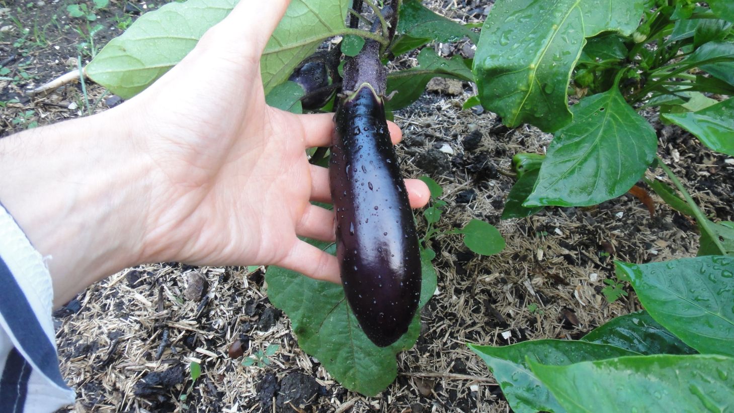Sous le voile de forçage, aubergines vertes (Thaï Long Green) et blanches (Chinese White Sword):