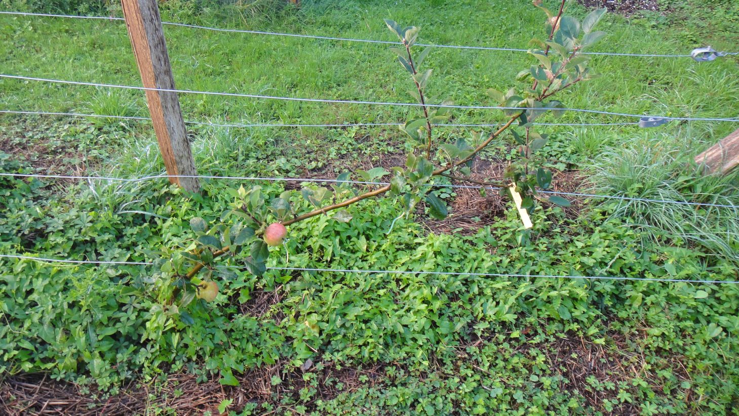 Pommes Reinette grise de Saintonge et Belle fille de l'Indre (scions plantés il y a 33 mois et 21 mois):