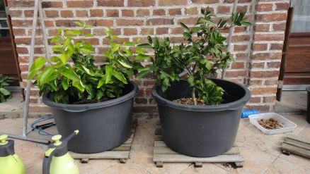 Citronnier à gauche et mandarinier Satsuma Owari à droite:
