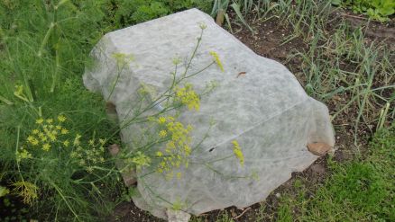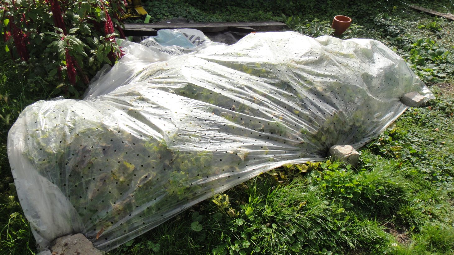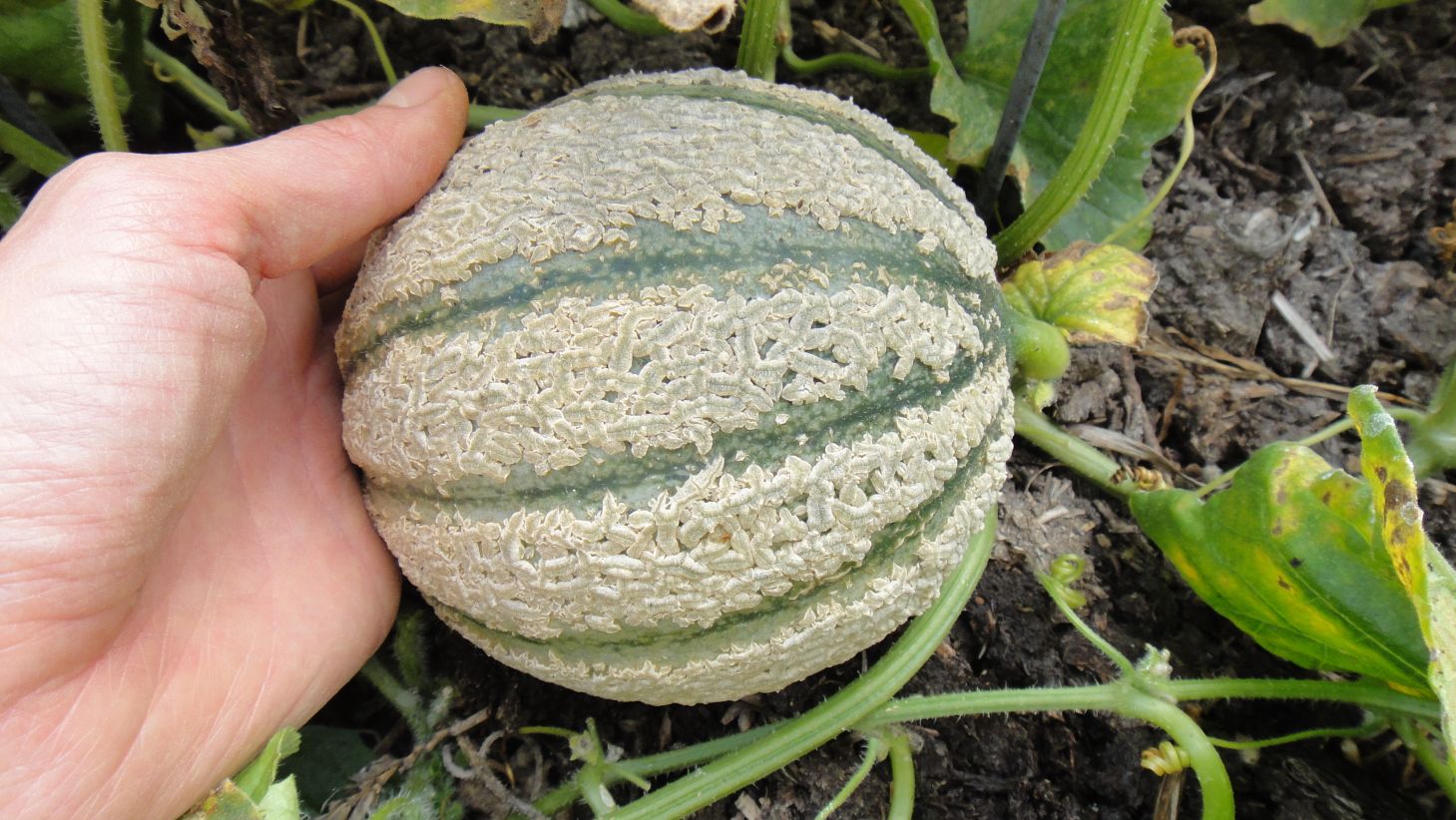 Sous la bâche plastique percée, melons: