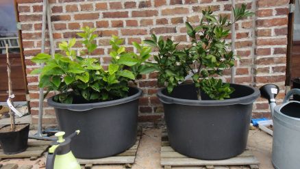 Citronnier à gauche et mandarinier Satsuma Owari à droite: