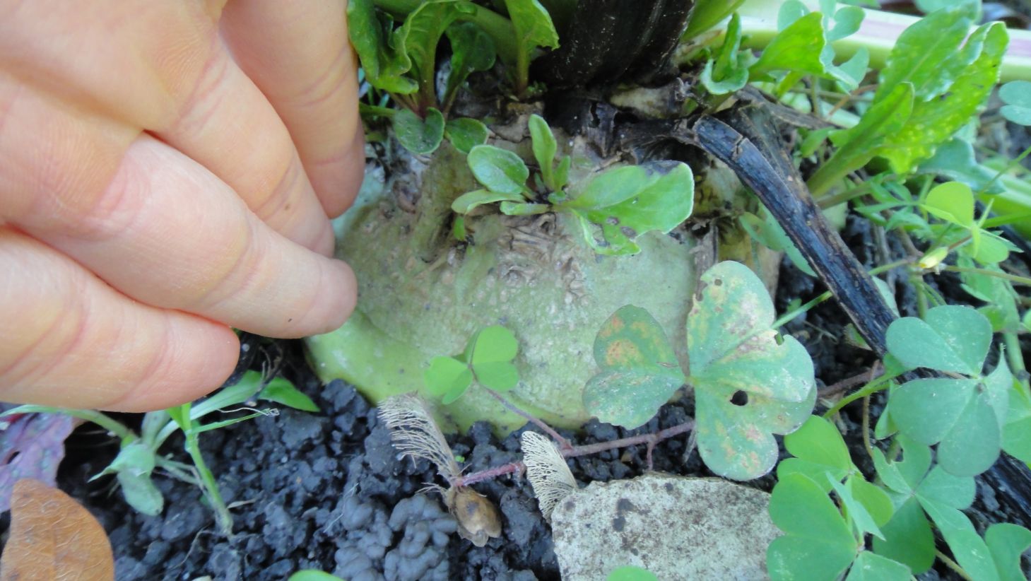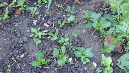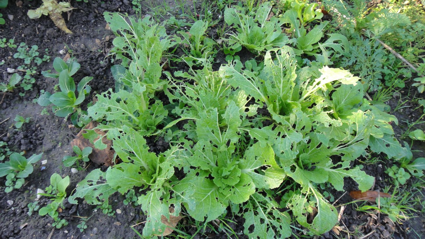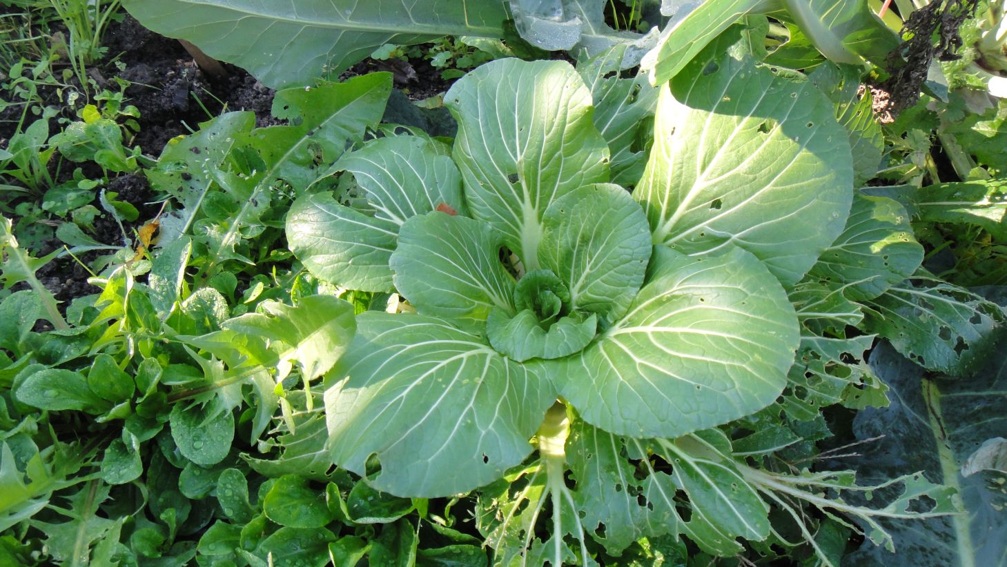 Chou chinois Pak-choï nain noyé dans la mâche: