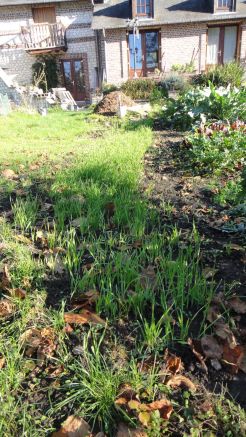 Céréales semées le 21 octobre: orge nue au premier plan, seigle ensuite puis avoine nue à l'arrière-plan: