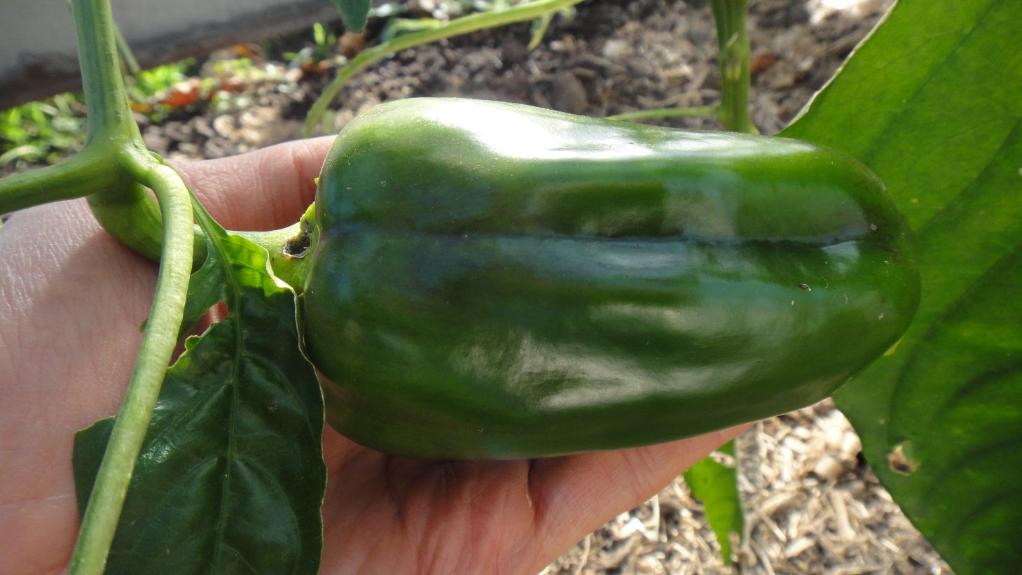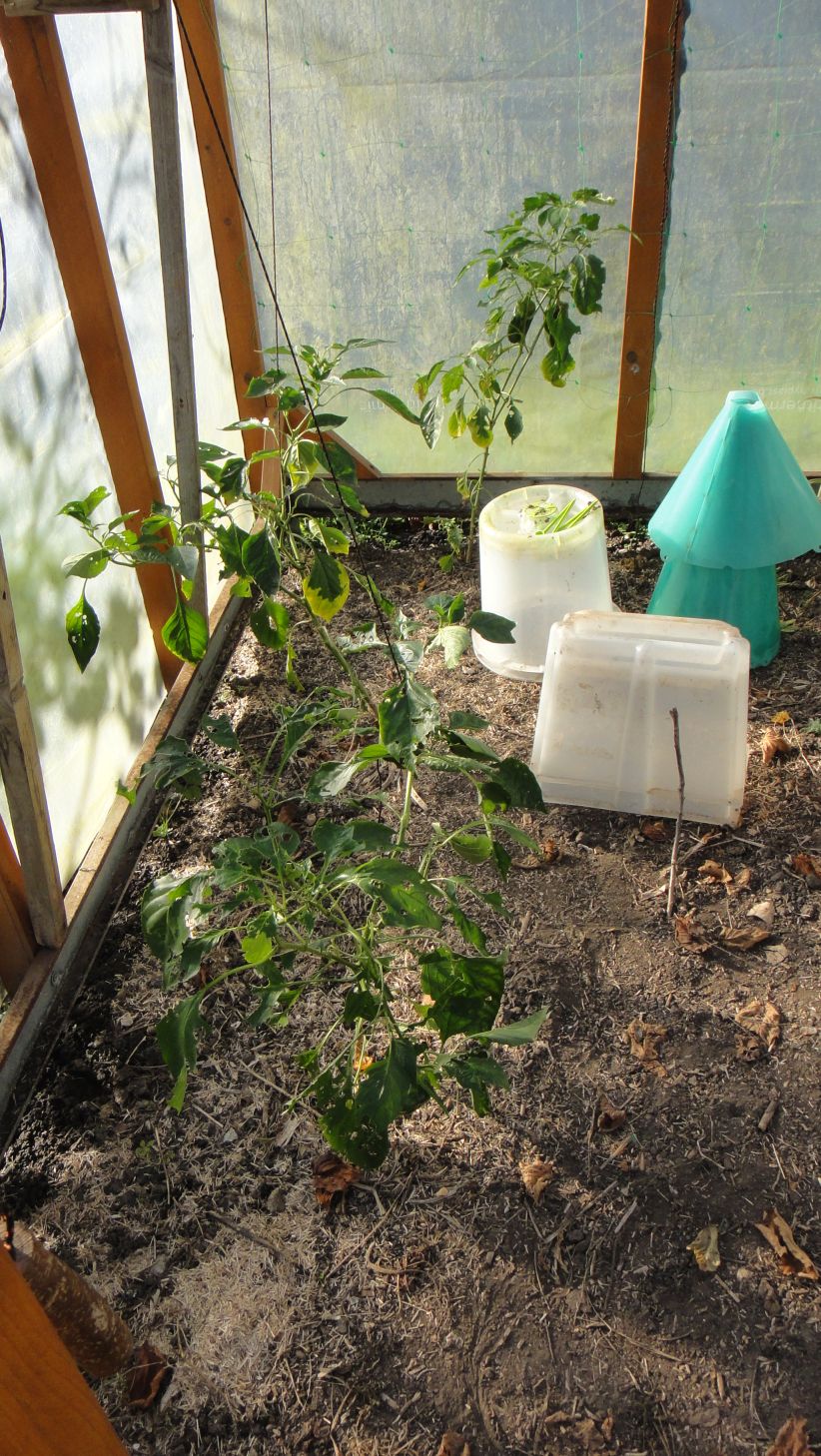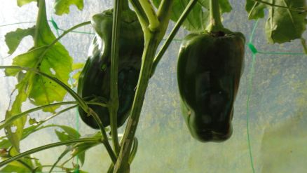 Dans la serre, quelques poivrons: