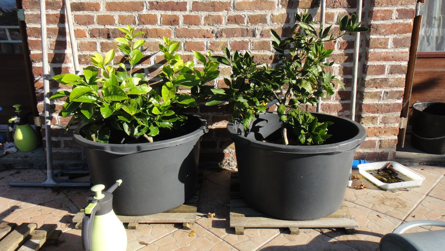 Citronnier à gauche et mandarinier Satsuma Owari à droite: