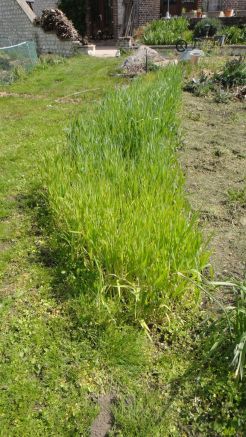 Orge nue au premier plan, suivi de seigle, et avoine nue au fond: