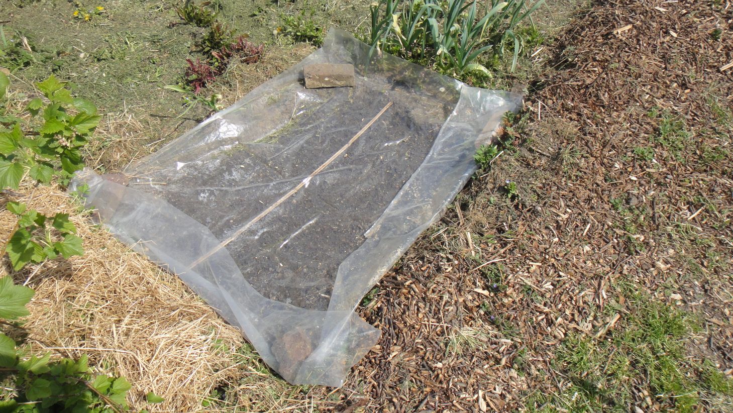 Plastique étanche posé sur semis de carottes: