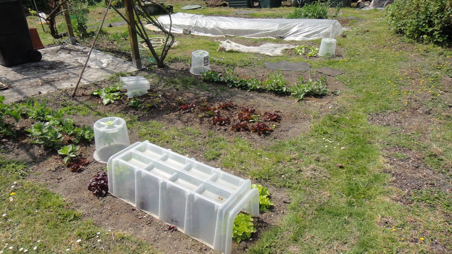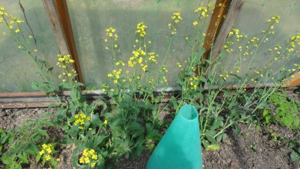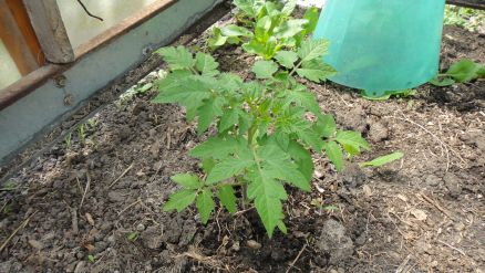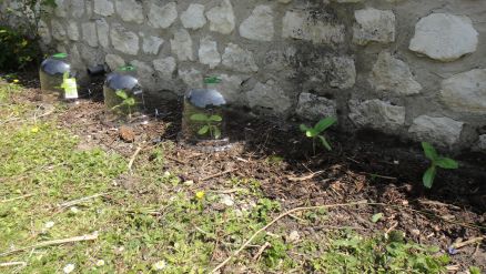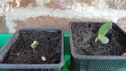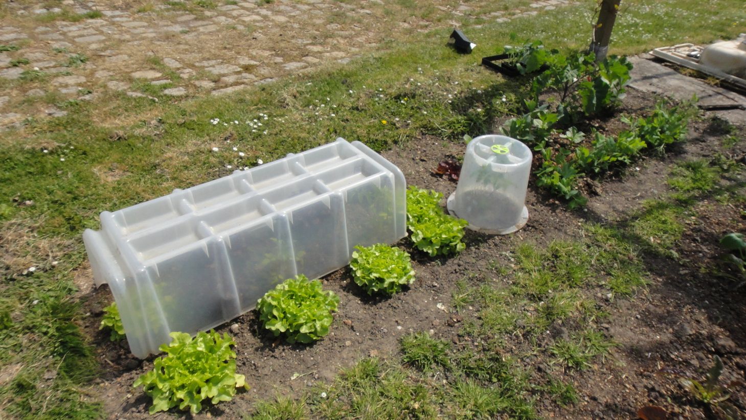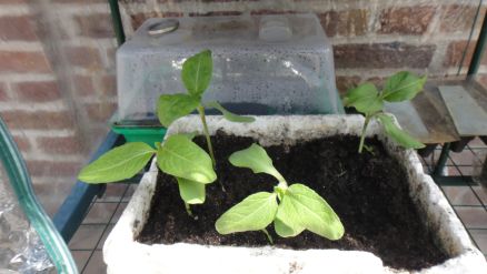 Tournesol devant et mini-serre derrière: