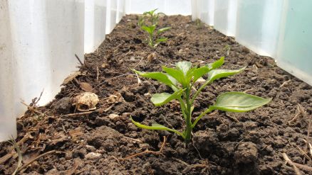 Poivron sous le tunnel et tomate cerise sous les cônes: