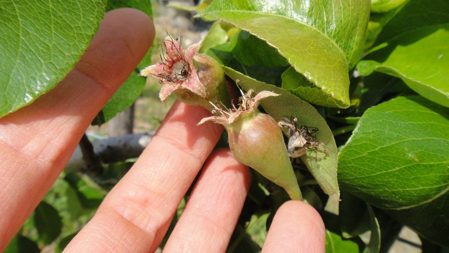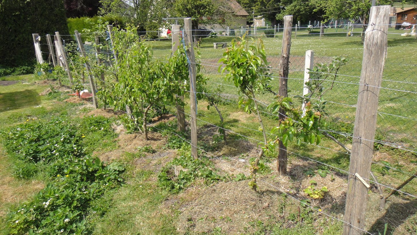 Poiriers palissés et bébés poires (éclaircis):