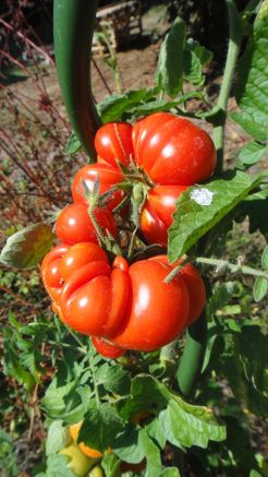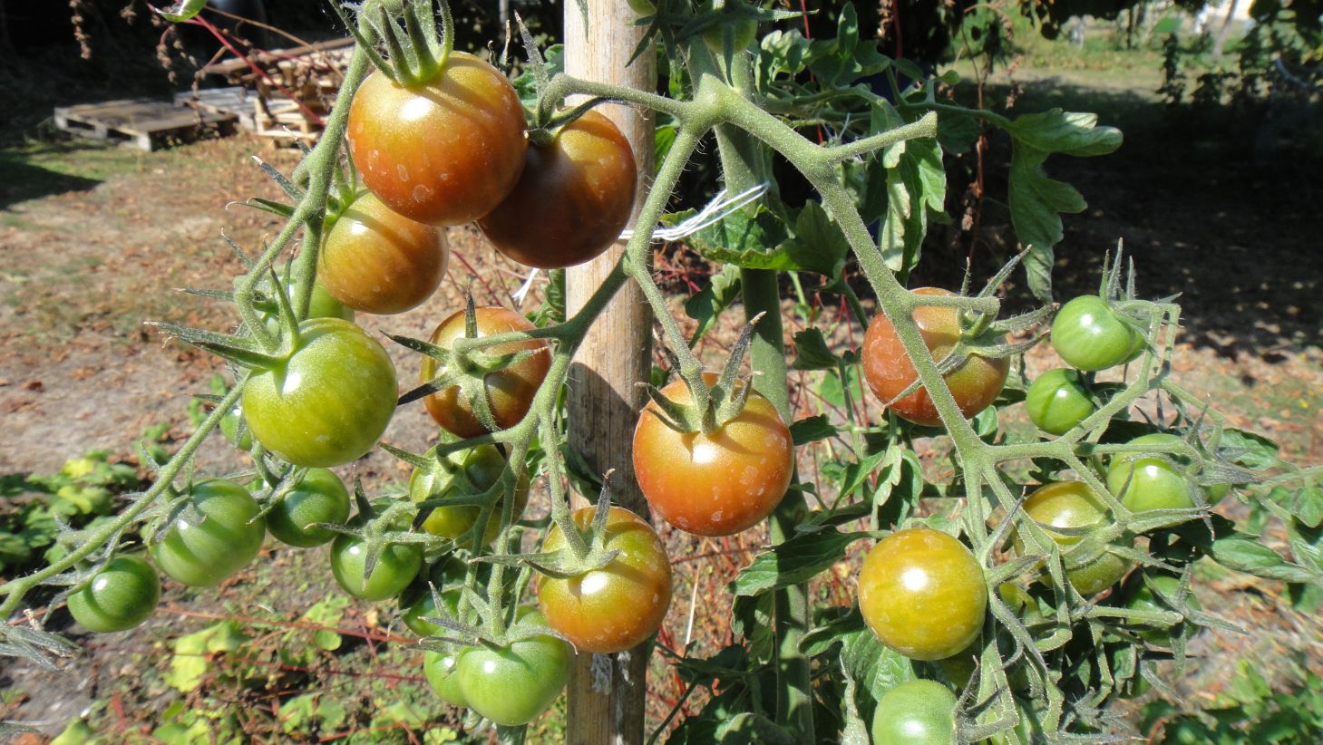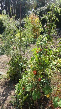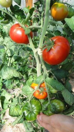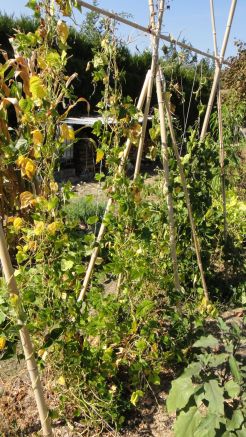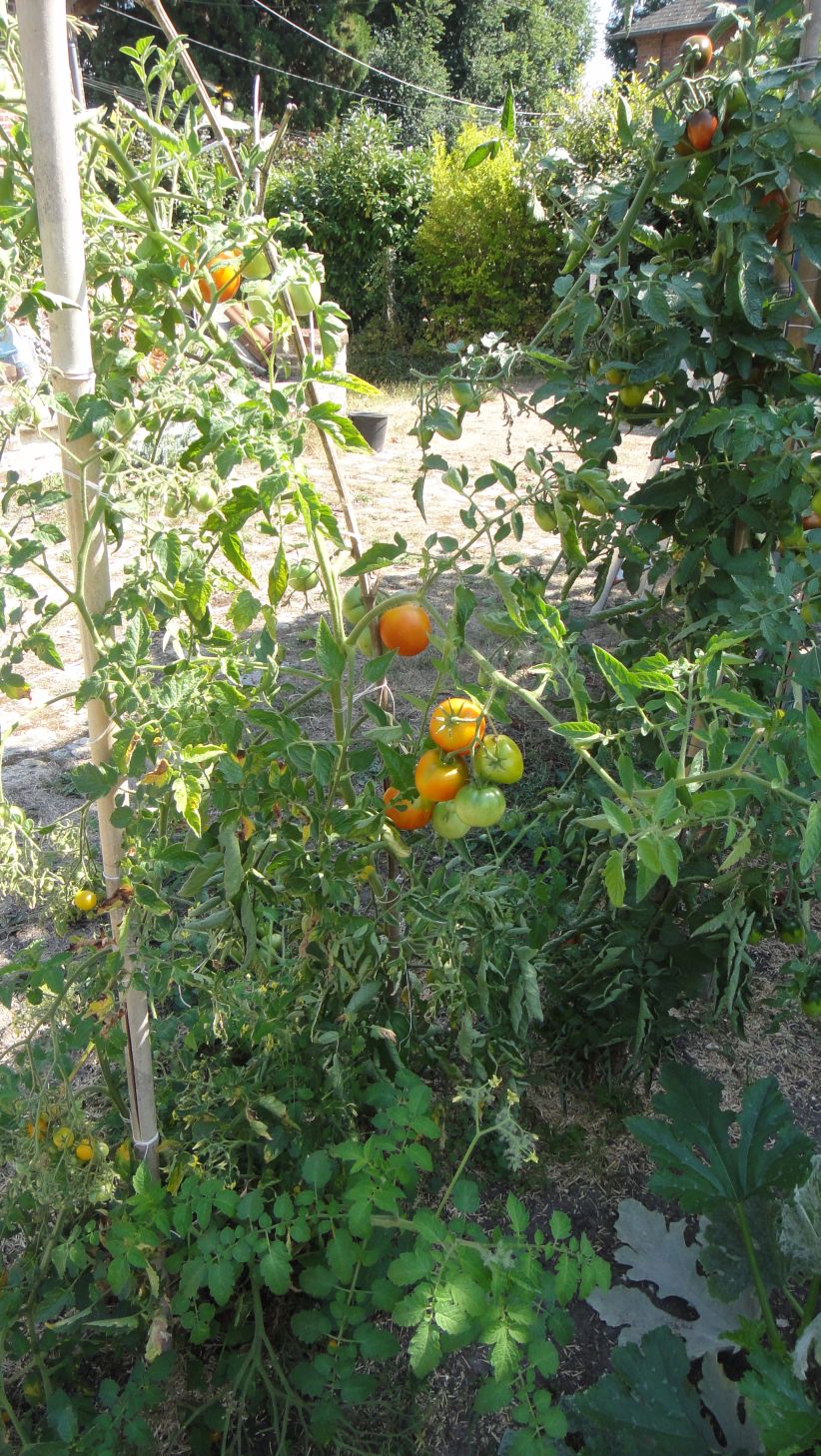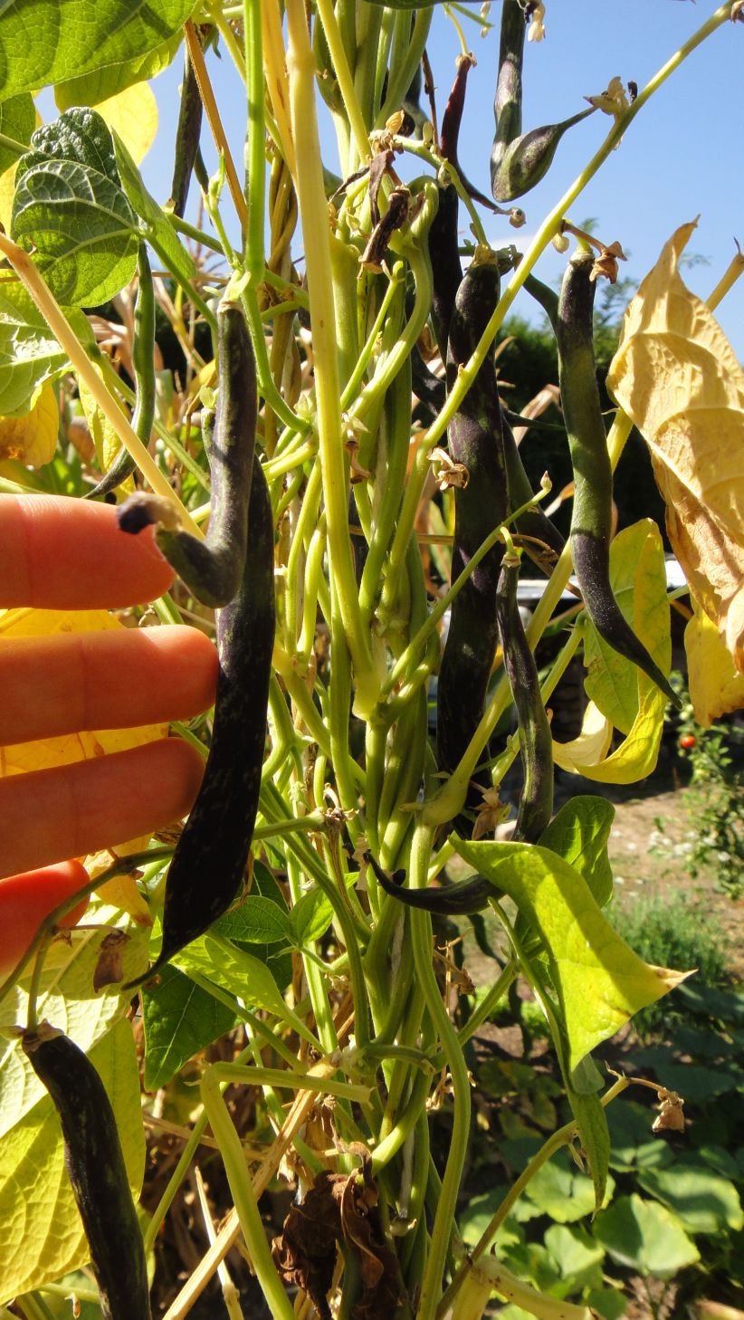 Récolte du potager: haricot, poivron, concombre, tomate et aubergine: