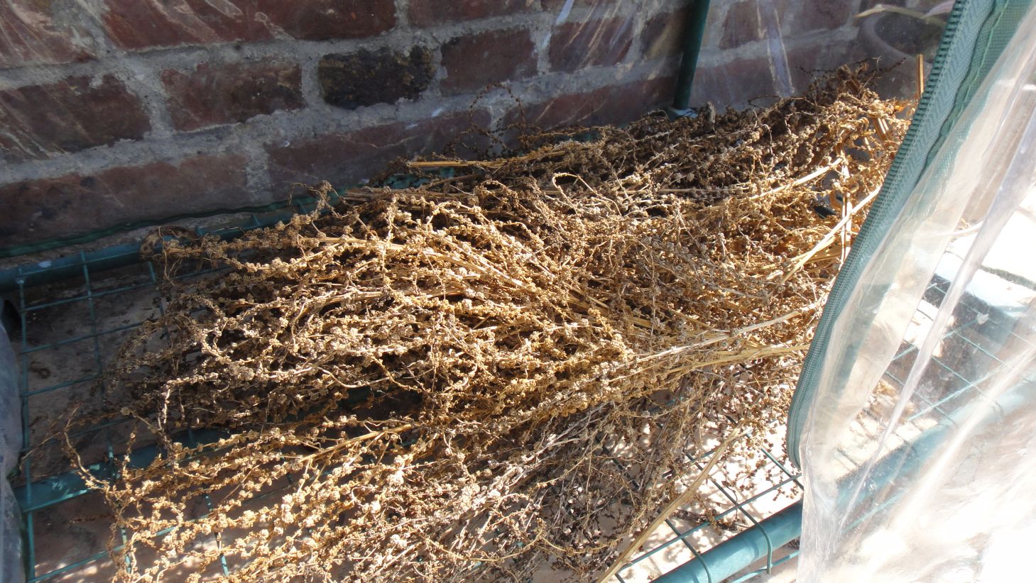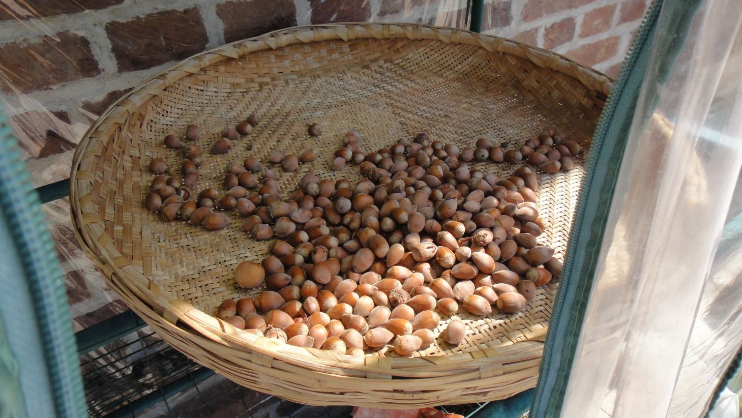 Dans la mini-serre, séchage de noisettes et de graines de betterave blanche: