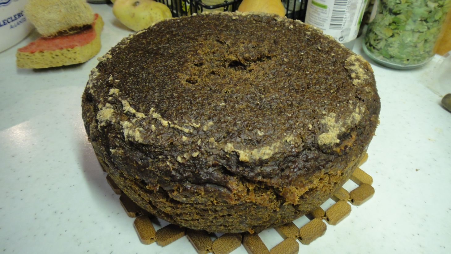 La cuisson dure entre 11 heures et 20 heures en fonction du volume cuit : j'utilise l'odeur qui sort du four comme indicateur.